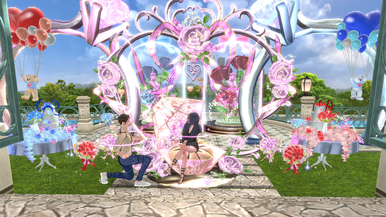 ※ガチャを51回使用すると、[カスタム]シルバーウェディングオスカップルリング:20%、[固定]ピンクウェディングオスカップルリング:20%、大型ダイヤリングフォトスポット-ゴールド:20%、ラブバルーンベア-ブルー:20%、リボンローズガラスケージ-ピンク:20%の中から1つ獲得(該当アイテム獲得時、回数リセット)