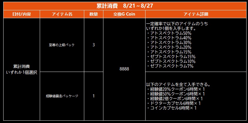 8月21日(木)メンテナンス後から8月28日(木)メンテナンス前まで、