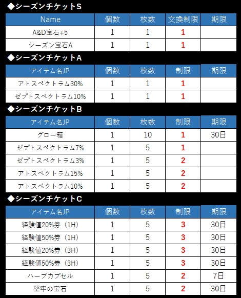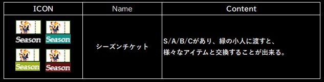 ※シーズンチケットアイテムは、各シーズンごとに変更予定です。