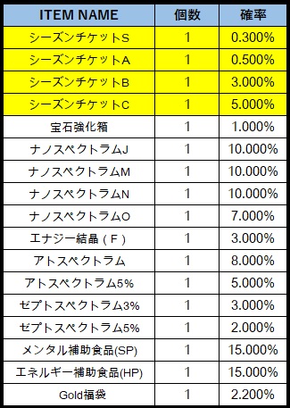 ※各種「シーズンチケット」は「覇者戦域1BOX」から一定の確率で出現します。