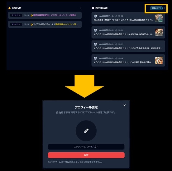 5)プロフィールの設定が完了したら、自由掲示板に投稿をすることができます。