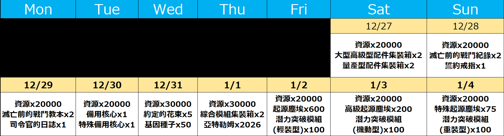 期間:2025年12月27日(週六)00:00 ~ 2026年1月4日(週日)23:59